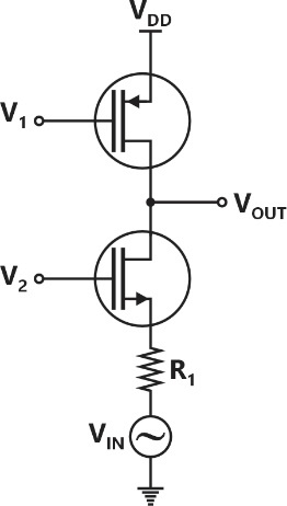 In the circuit shown below, and are bias voltages. Based on input and output impedances, the circuit behaves as a