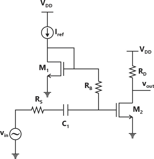 In the circuit below, assume that the long channel NMOS transistor is biased in saturation. The small signal trans-conductance of the transistor is . Neglect body effect, channel length modulation and intrinsic device capacitances. The small signal input impedance is________.