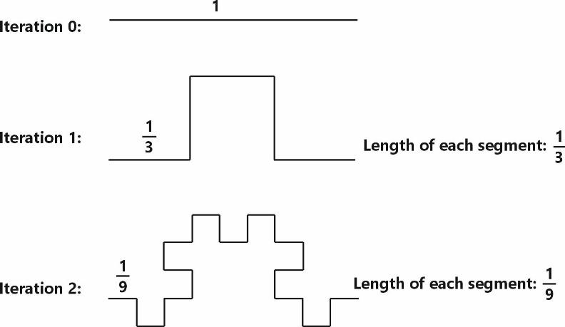 The following figures show three curves generated using an iterative algorithm. The total length of the curve generated after 'Iteration n' is: