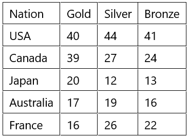 The table lists the top 5 nations according to the number of gold medals won in a tournament; also included are the number of silver and the bronze medals won by them. Based only on the data provided in the table, which one of the following statements is INCORRECT?