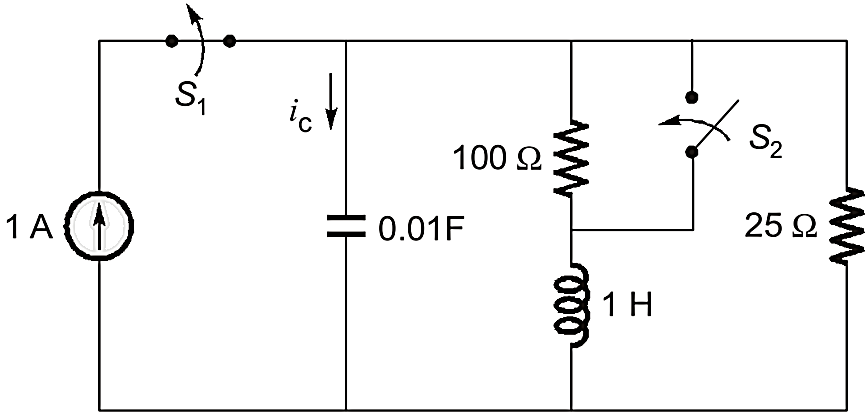 At ; switch closed, switch opened, hence the circuit is in steady state.