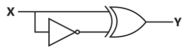 In the circuit shown below, X and Y are digital inputs, and Z is a digital output. The equivalent circuit is a
