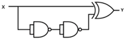 The TTL circuit shown in the figure is fed with the waveform X (also shown). All gates have equal propagation delay of 10ns. The output Y of the circuit is