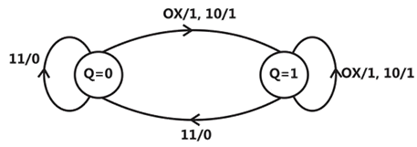 A state diagram of a logic gate which exhibits a delay in the output is shown in the figure, where X is the don’t care condition, and Q is the output representing the state.