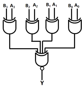 A digital circuit, which compares two numbers, is shown in figure. To get output Y = 0, choose one pair of correct input numbers.