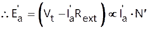 E1 = Vt – Iara = 400 – 15 × 1.2 = 382 V