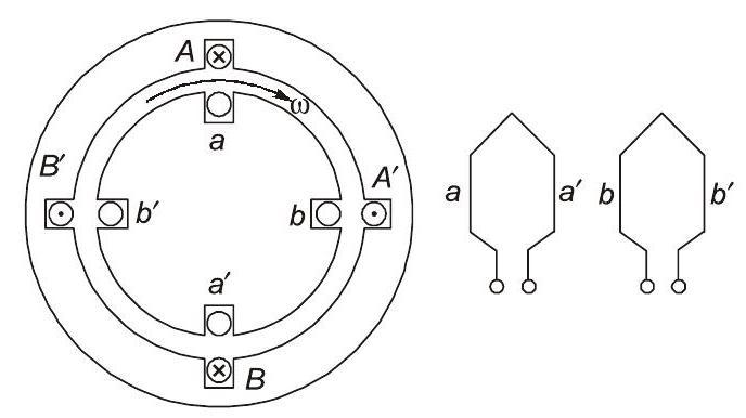 fig. (i) cross-section view fig. (ii) rotor winding connection diagram