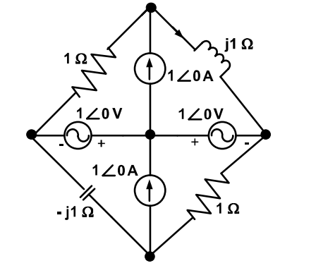. The circuit is in sinusoidal steady state, and, and are the average power outputs. Which one of the following statements is true?