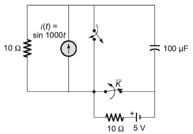 after t = t1 k closed so ac current source is shorted & is open so a series RC circuit with 5V dc source is formed.