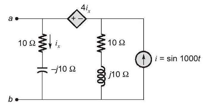 For the circuit shown, if , the instantaneous value of the Thevenin's equivalent voltage (in Volts) across the terminals at time is __________ (Round off to 2 decimal places).