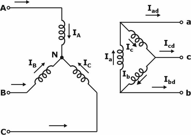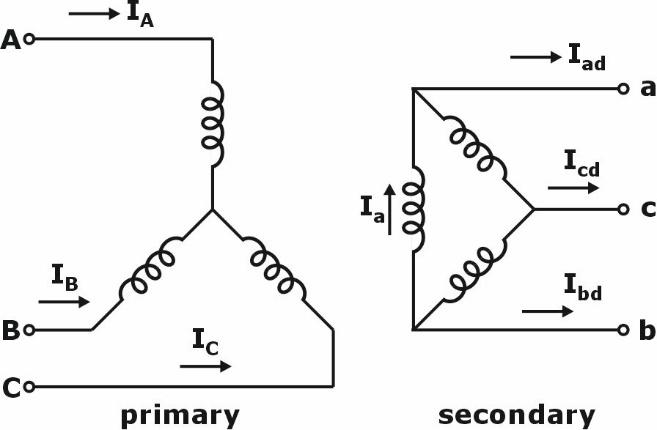 IncorrectThe transformer connection given in the figure is part of a balanced 3-phase circuit where the phase sequence is "". The primary to secondary turns ratio is . If , then the relationship between and will be