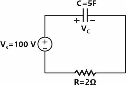 The charging equation for the capacitor voltage is: